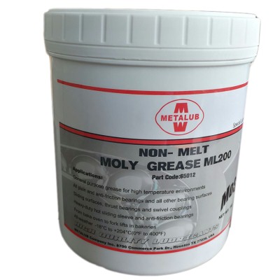 不熔化二硫化钼高温润滑脂ML200是一个高品质的高温极压润滑脂,并且含有高成份二硫化钼。不熔化二硫化钼高温润滑脂ML200采用高品质无蜡基础油和有机稠化剂特制而成,无滴点,高温不熔化。本产品不含蜡,高温下不结焦和不积碳。不熔化二硫化钼高温润滑脂ML200具有优异的机械性和热稳定性,和耐化学腐蚀性,适用于广泛接触温度范围广和潮湿的恶劣环境。